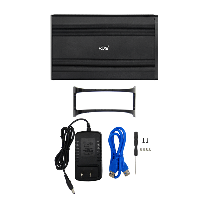 Caja 3,5" SATA USB 3.0 externa para Disco Duro negra, marca XUE. Incluye base Stand