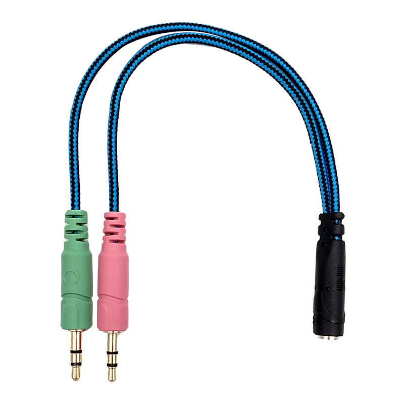 Diseñado para Conectar Diademas o Manoslibres jack 3.5mm de una sola salida en PC o Laptop de 2 entradas 3.5mm.