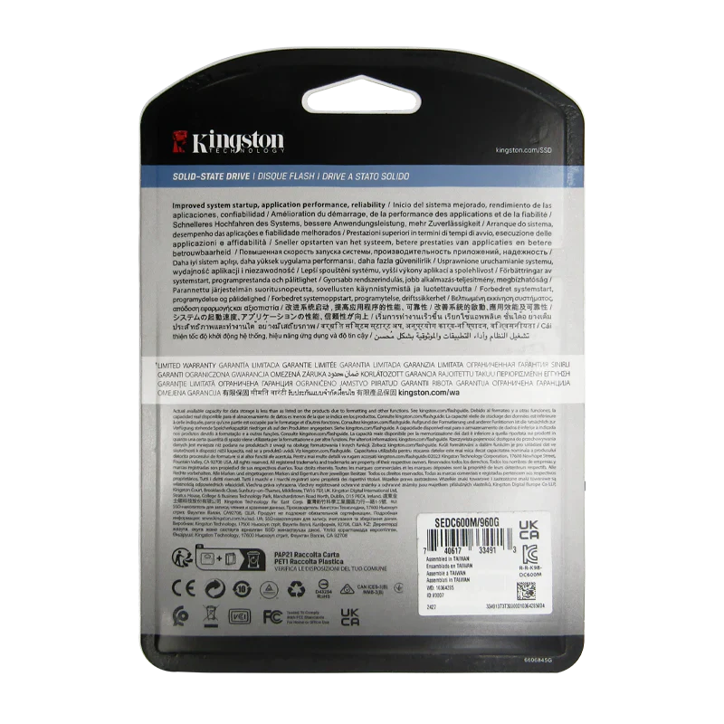 Contenido del paquete: 1 SSD SERVER 2.5 960GB SATA KINGSTON