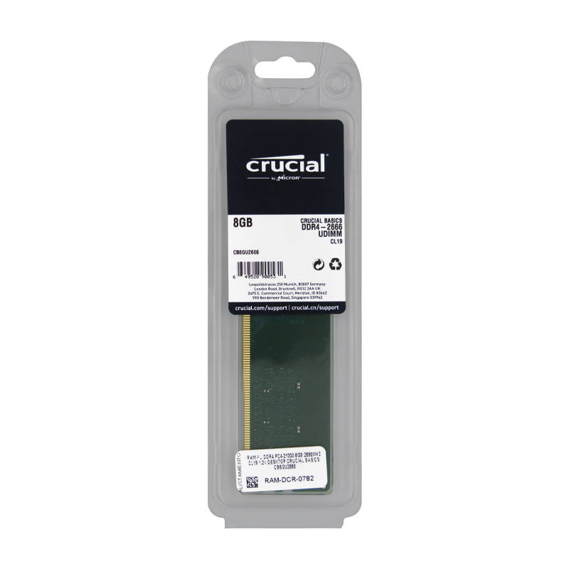 • Memoria RAM para Desktop DDR4 PC4-21300 8GB 2666MHZ CL19 1.2V Crucial Basics CB8GU2666
