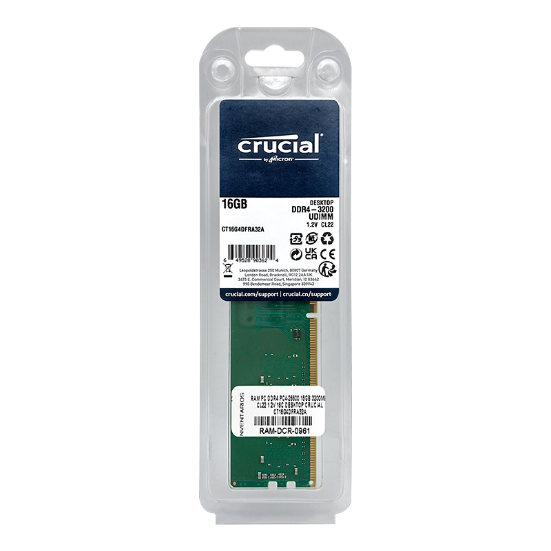 • Memoria RAM para desktop DDR4 PC4-25600 16GB 3200MHZ CL22 1.2V 16C Crucial CT16G4DFRA32A (workstations)