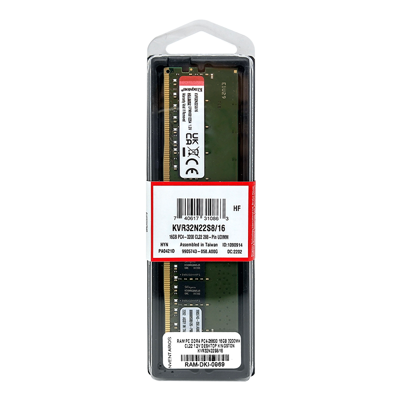 Memoria RAM para Desktop DDR4 PC4-25600 16GB 3200MHZ CL22 1.2V Kingston KVR32N22S8/16