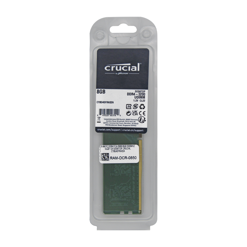 • Memoria RAM para desktop DDR4 PC4-25600 8GB 3200MHZ CL22 1.2V Crucial CT8G4DFRA32A