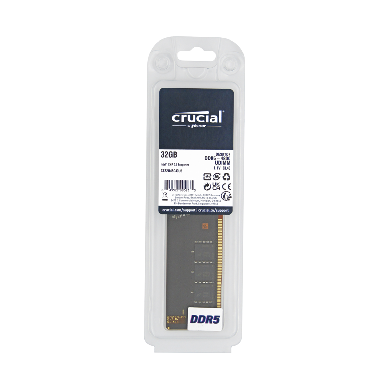 • Memoria RAM para Desktop DDR5 PC5-38400 32GB 4800MHZ CL40 1.1V DESKTOP CRUCIAL CT32G48C40U5