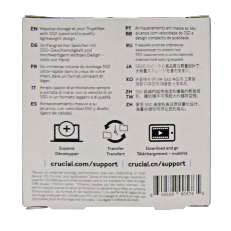 Contenido del paquete: 1 SSD USB 3.2 TIPO C 4TB EXT. CRUCIAL X6 CT4000X6SSD9