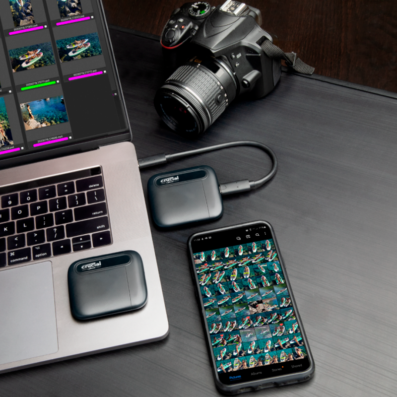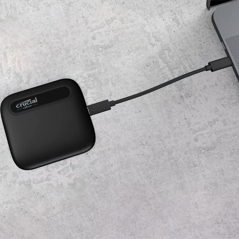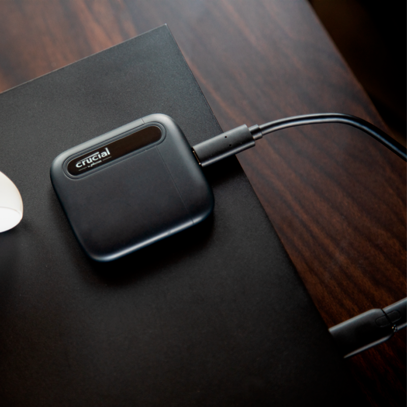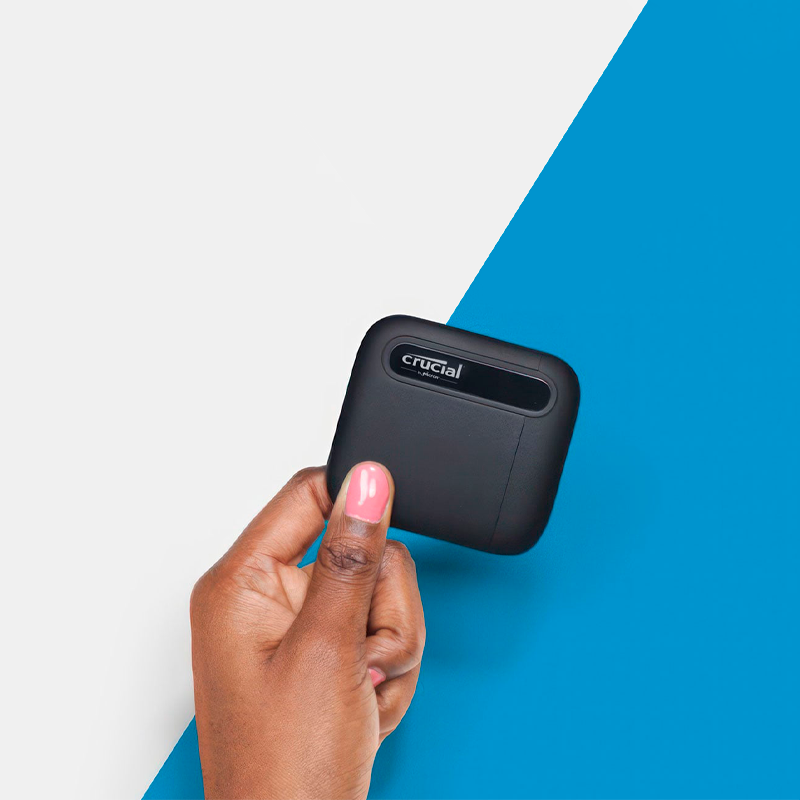 Con una capacidad de hasta 4 TB1, lleva tu vida digital contigo. Ahora puedes llevar en tu bolsillo enormes bibliotecas de fotos, archivos, juegos y colecciones de películas. Con menos de 40 gramos, el Crucial X6 pesa menos que las llaves de tu coche.